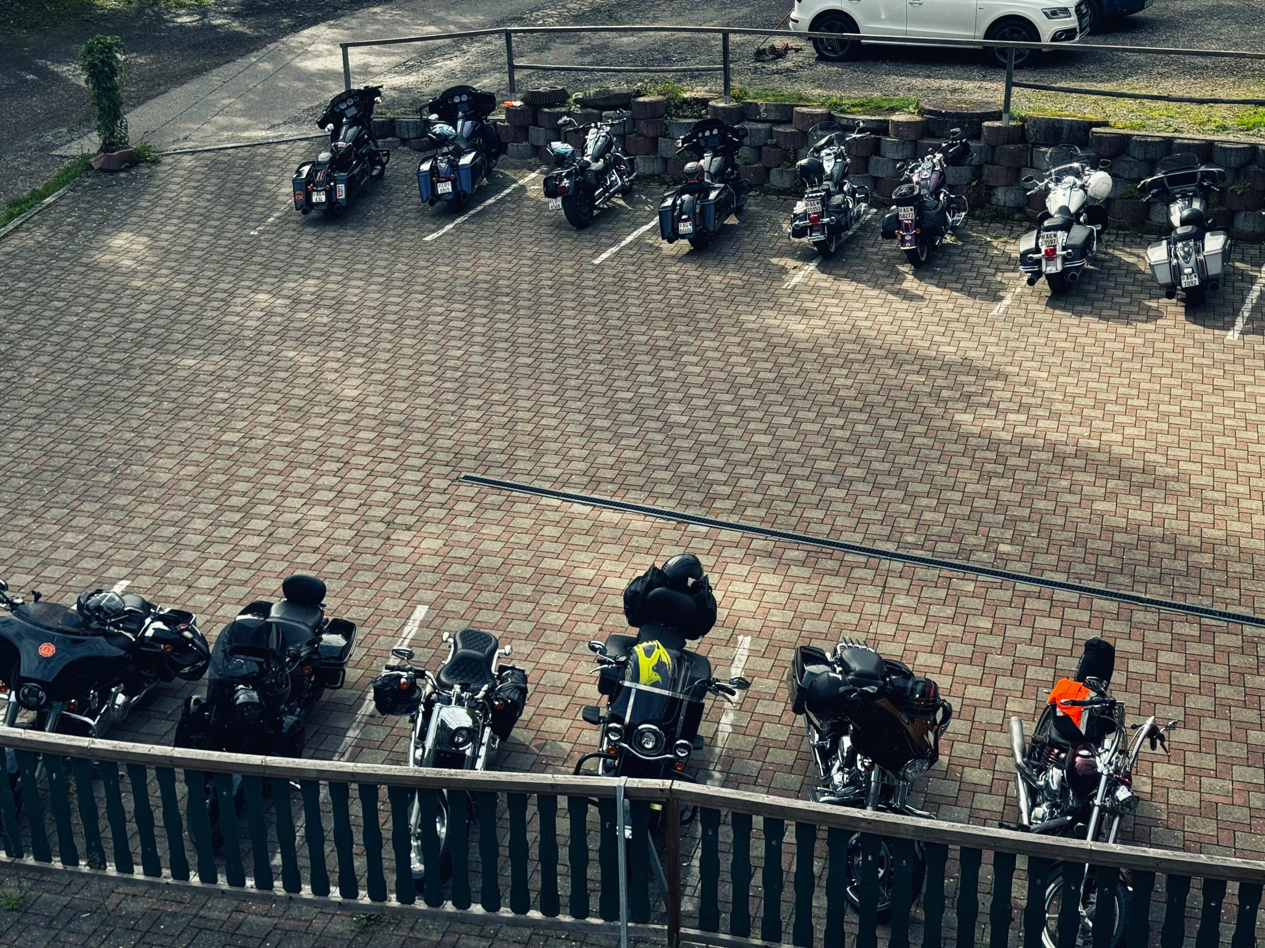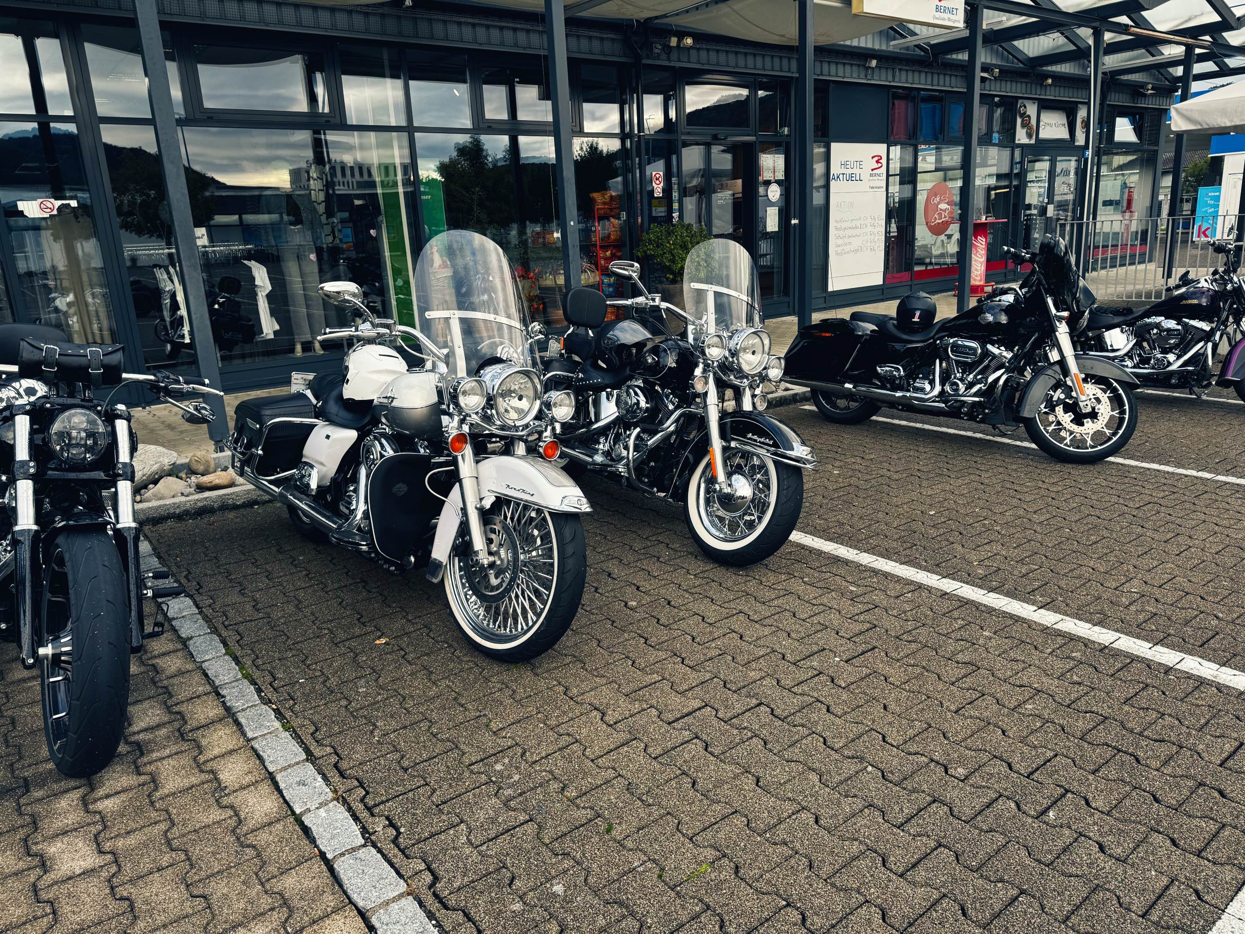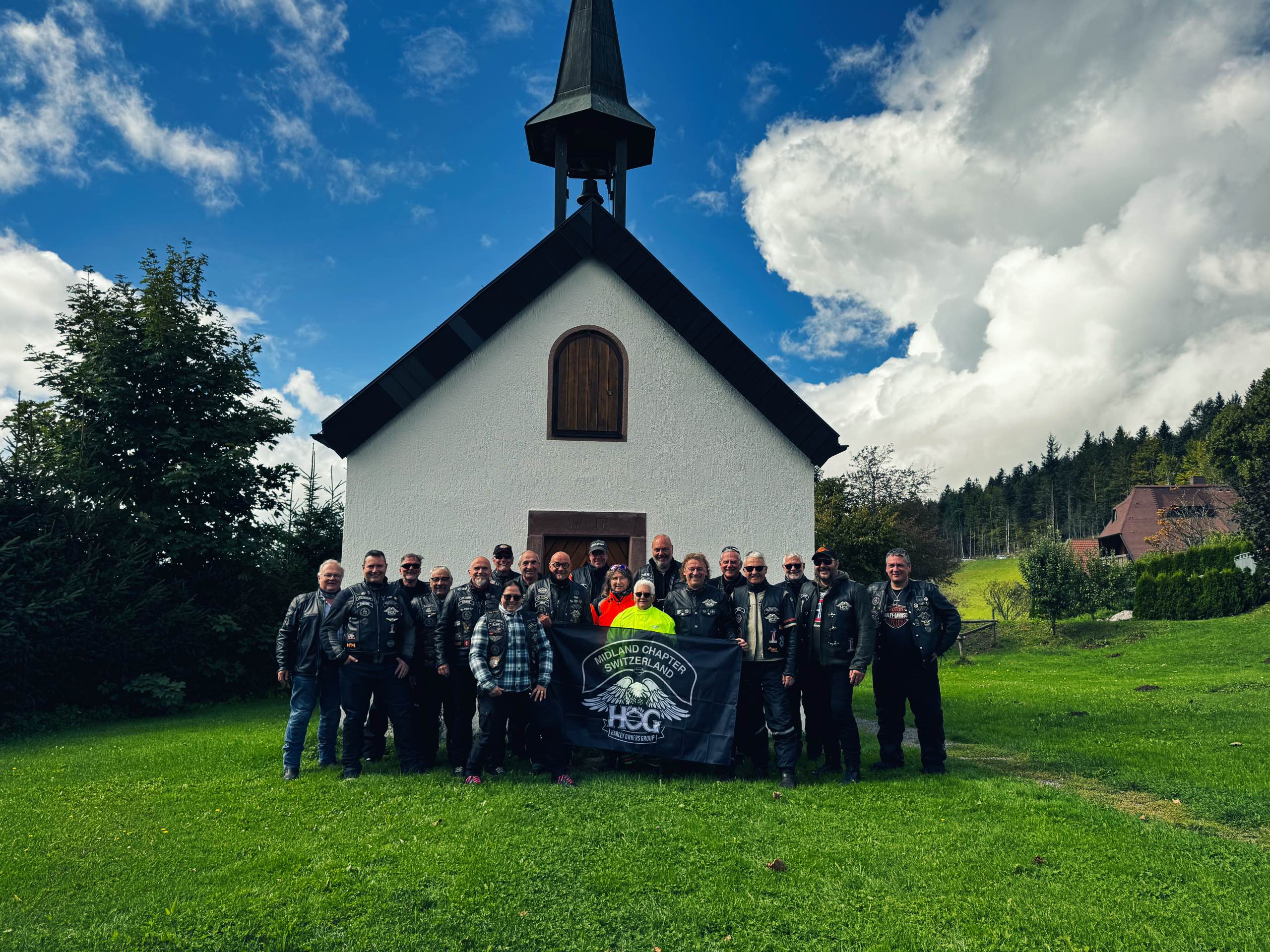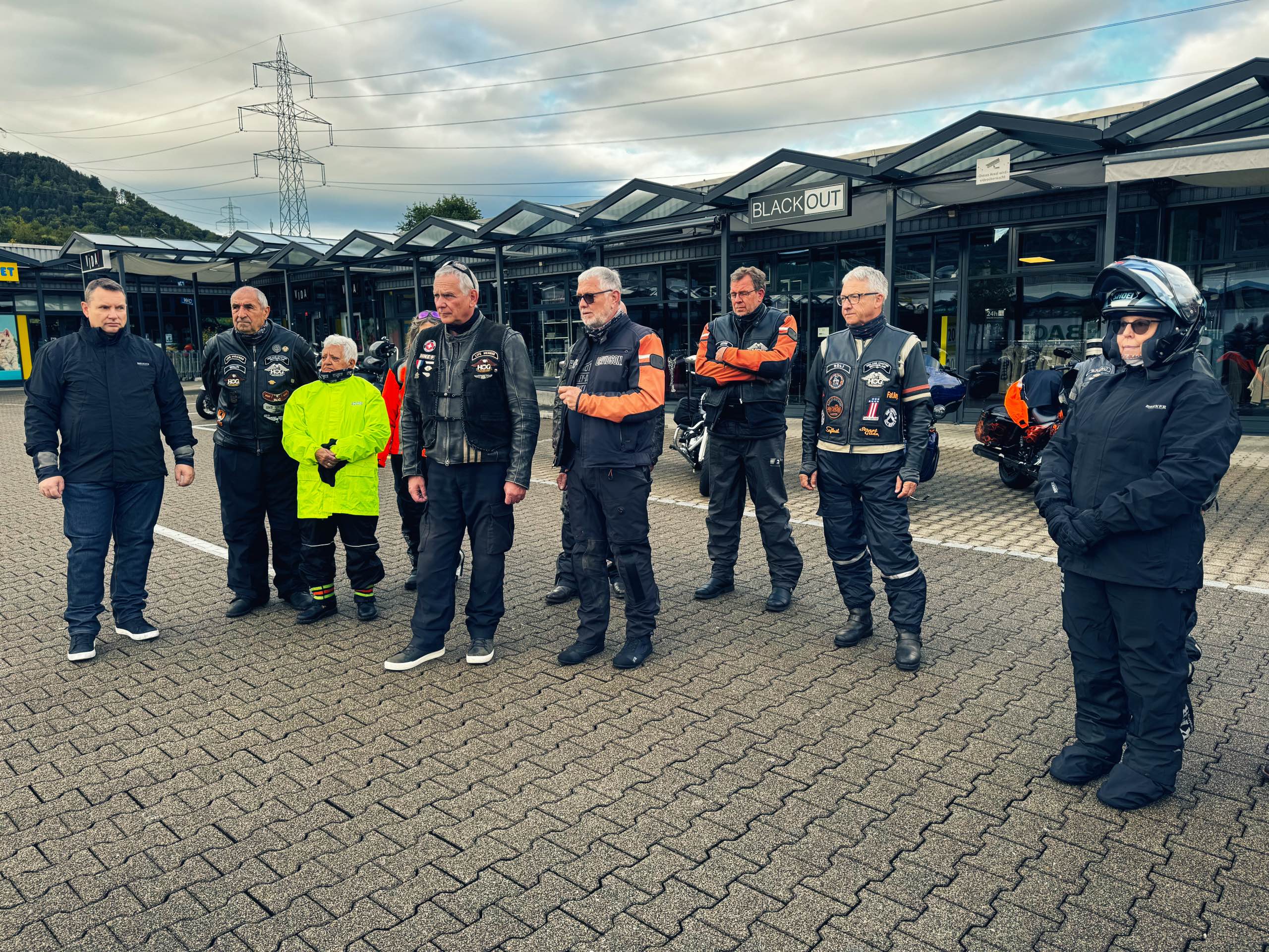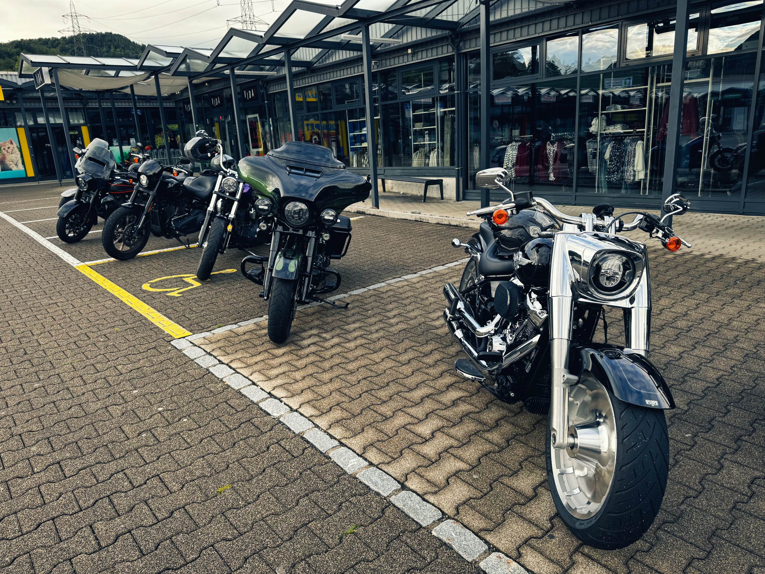 Der Tag begann in aller Frühe, einige hatten eine längere Anfahrt: Treffpunkt 8 Uhr in Frick. Nach dem Briefing starteten wir mit Road Captain Oli, der die Meute anführte und mit Road Captain Salvi, der als Safety im Einsatz war. 19 Midlander mit 18 Harleys – das ergibt schon ein ordentliches Dröhnen, wenn die Motoren losbrüllen.