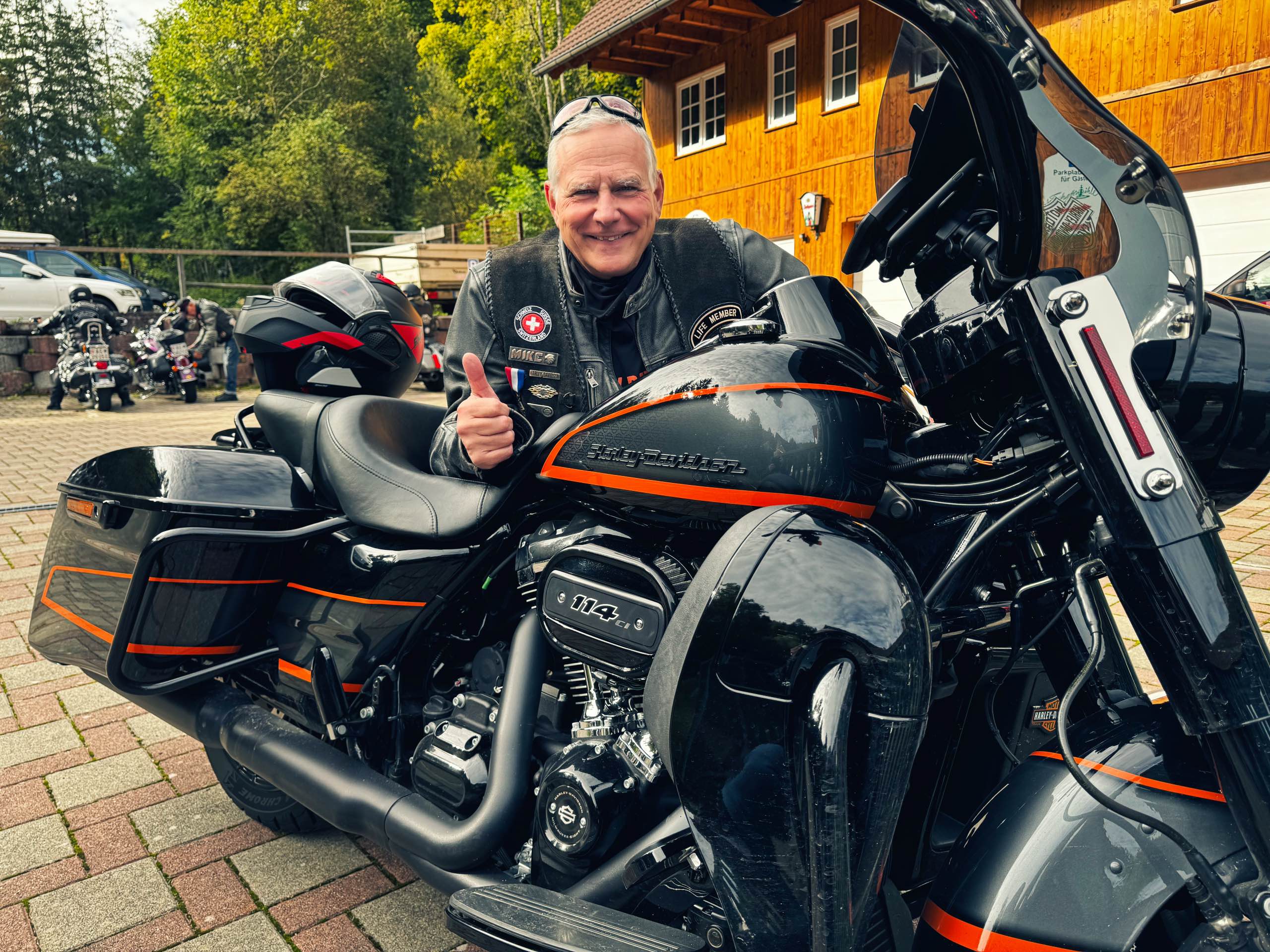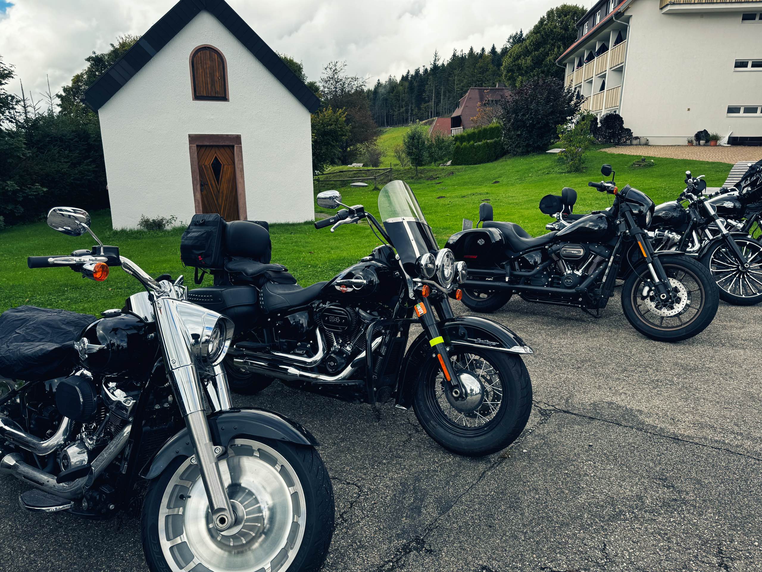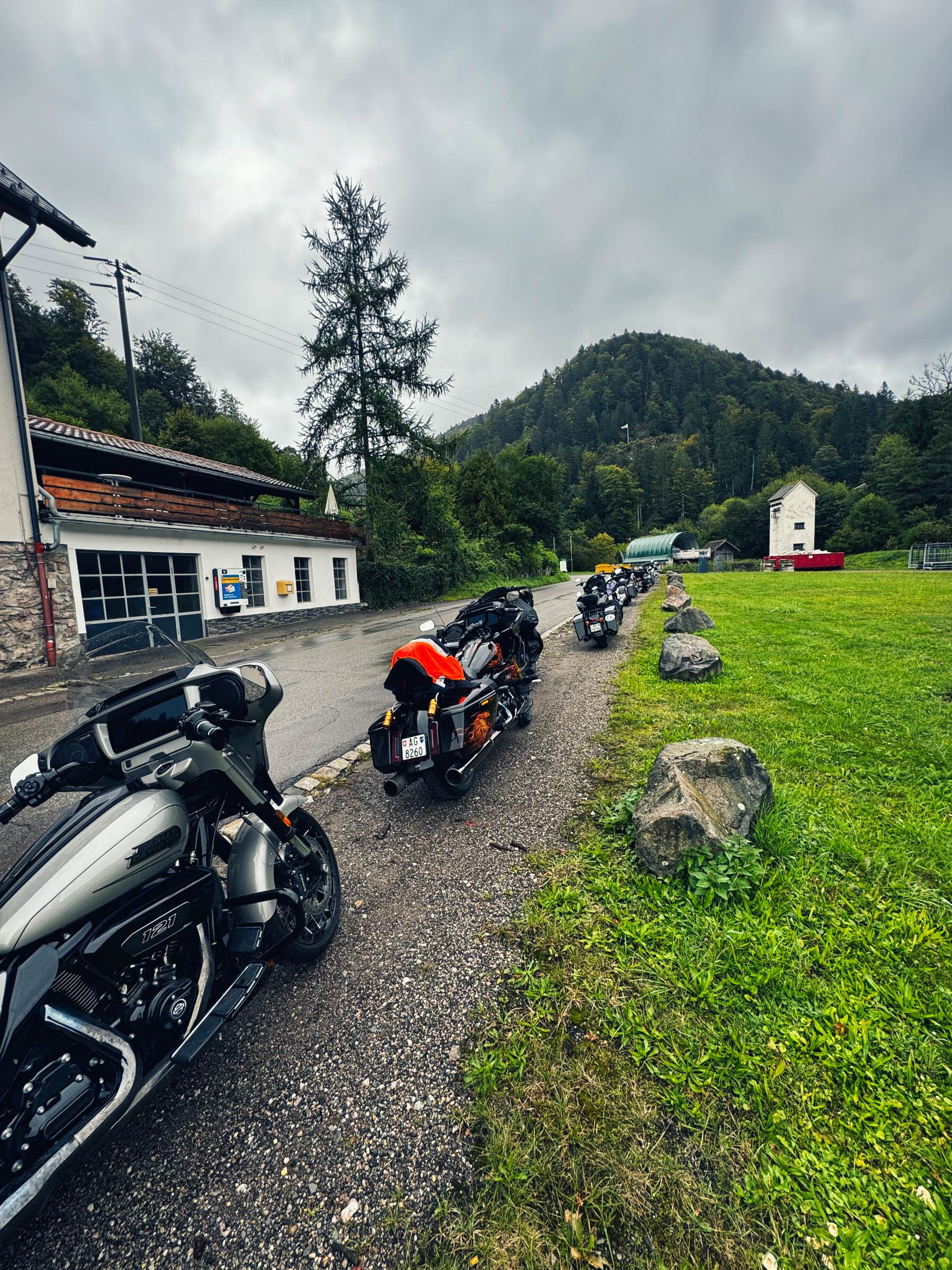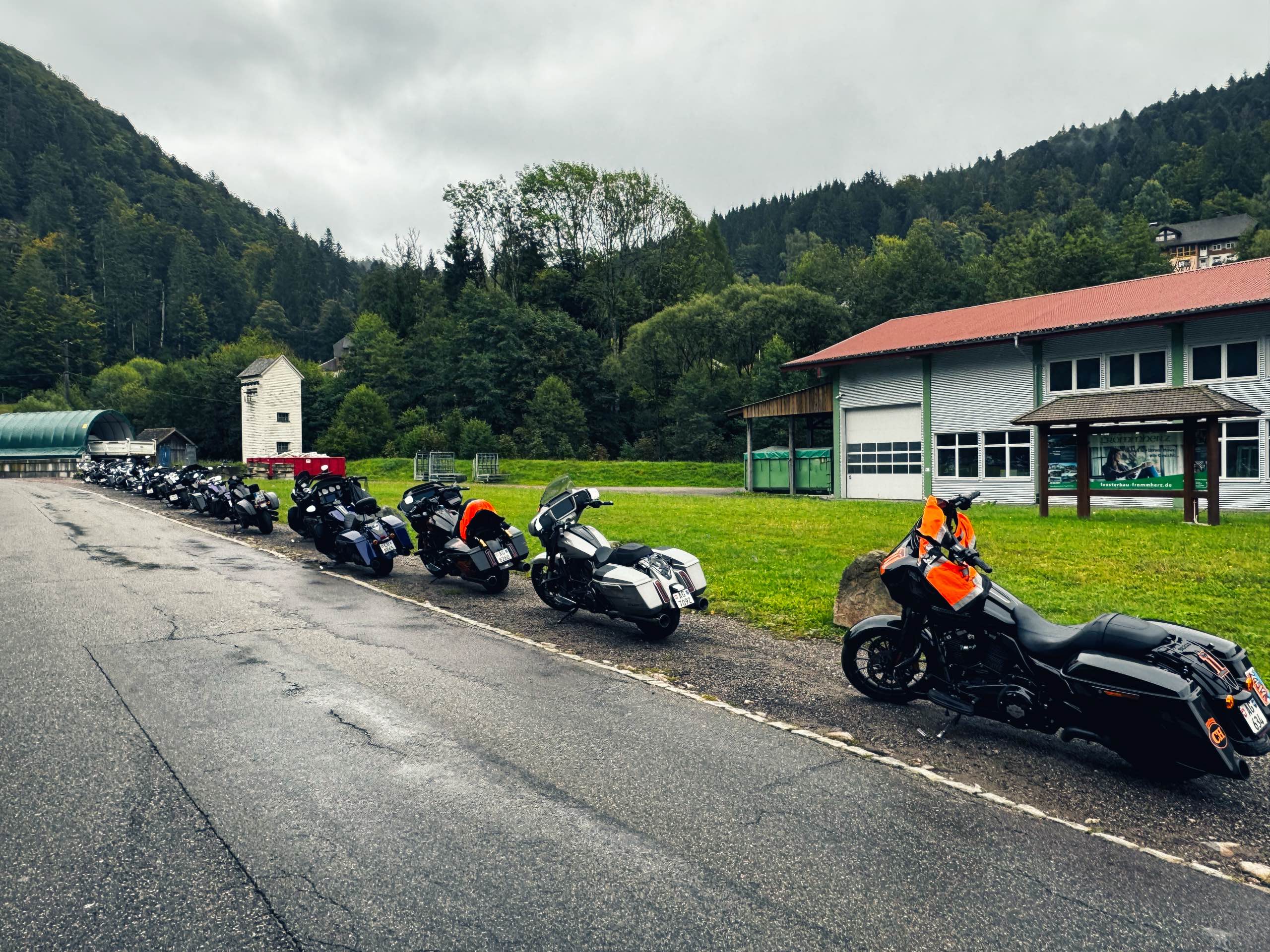 Am Nachmittag zeigte sich der Schwarzwald von seiner schönsten Seite: Kurvenreiche Strassen, tiefe Schluchten, schmale Täler – genau das Terrain, das Harley-Fahrer lieben. Für den süssen Abschluss hielten wir in der Wutachschlucht beim Restaurant Schattenmühle. Die Auswahl an Desserts war fast gefährlich: Hausgemachter Zwetschgenstrudel, Apfelstrudel, Eis mit und ohne Rahm – für jeden Gusto war etwas dabei. Spätestens jetzt zogen auch die letzten Regenpessimisten ihre Hosen aus. Und siehe da: Die Sonne lachte uns endlich richtig ins Gesicht.