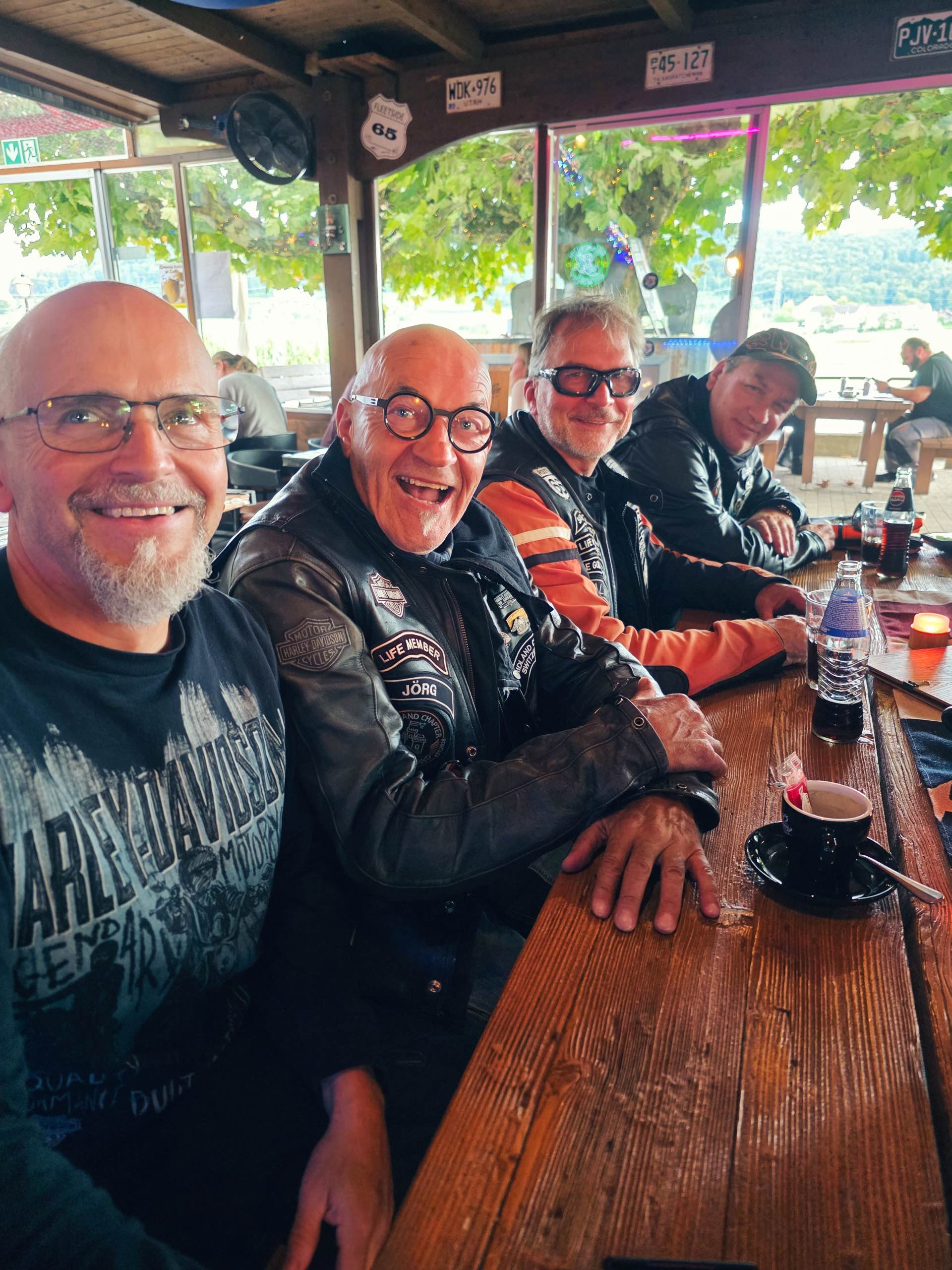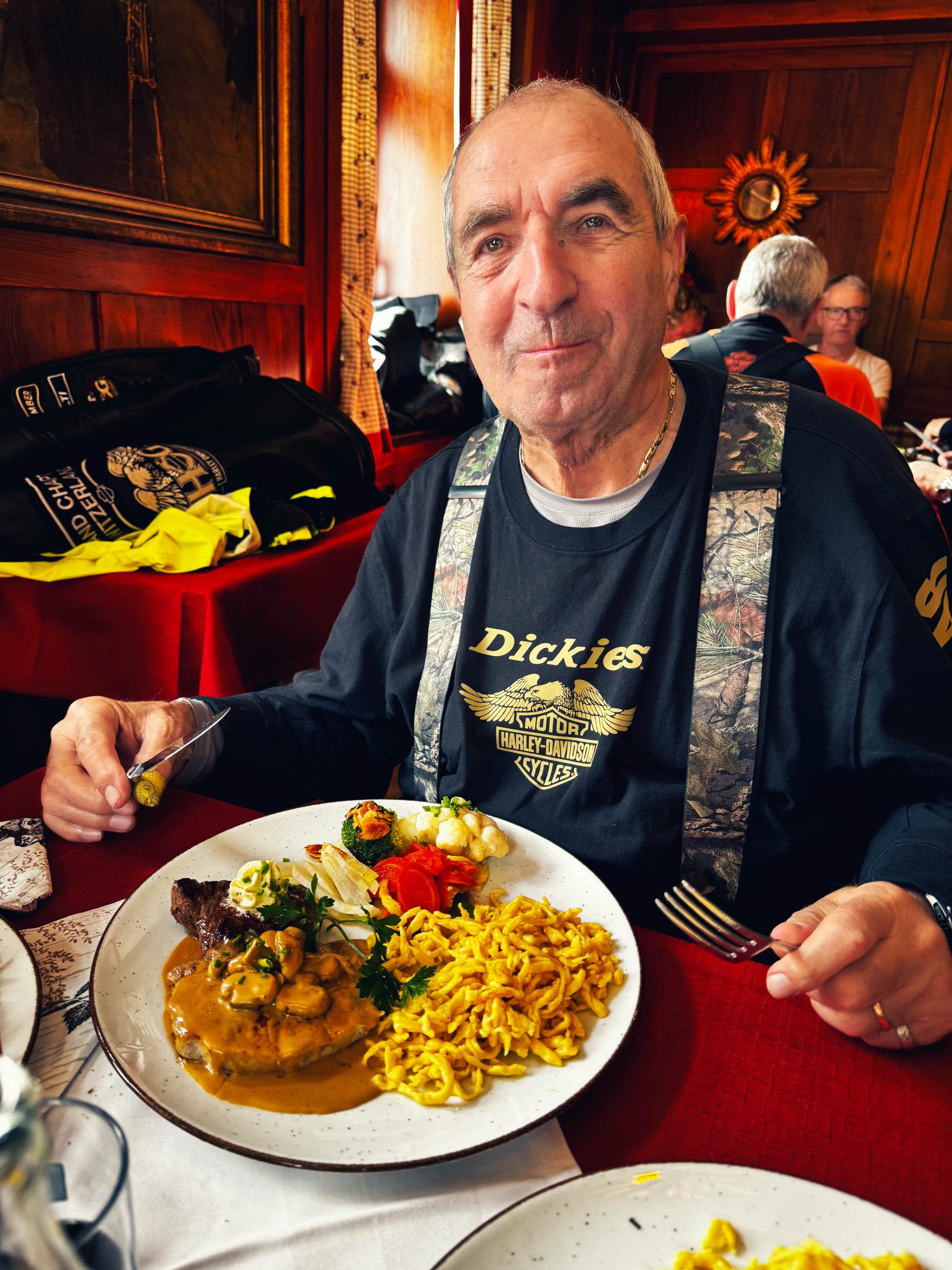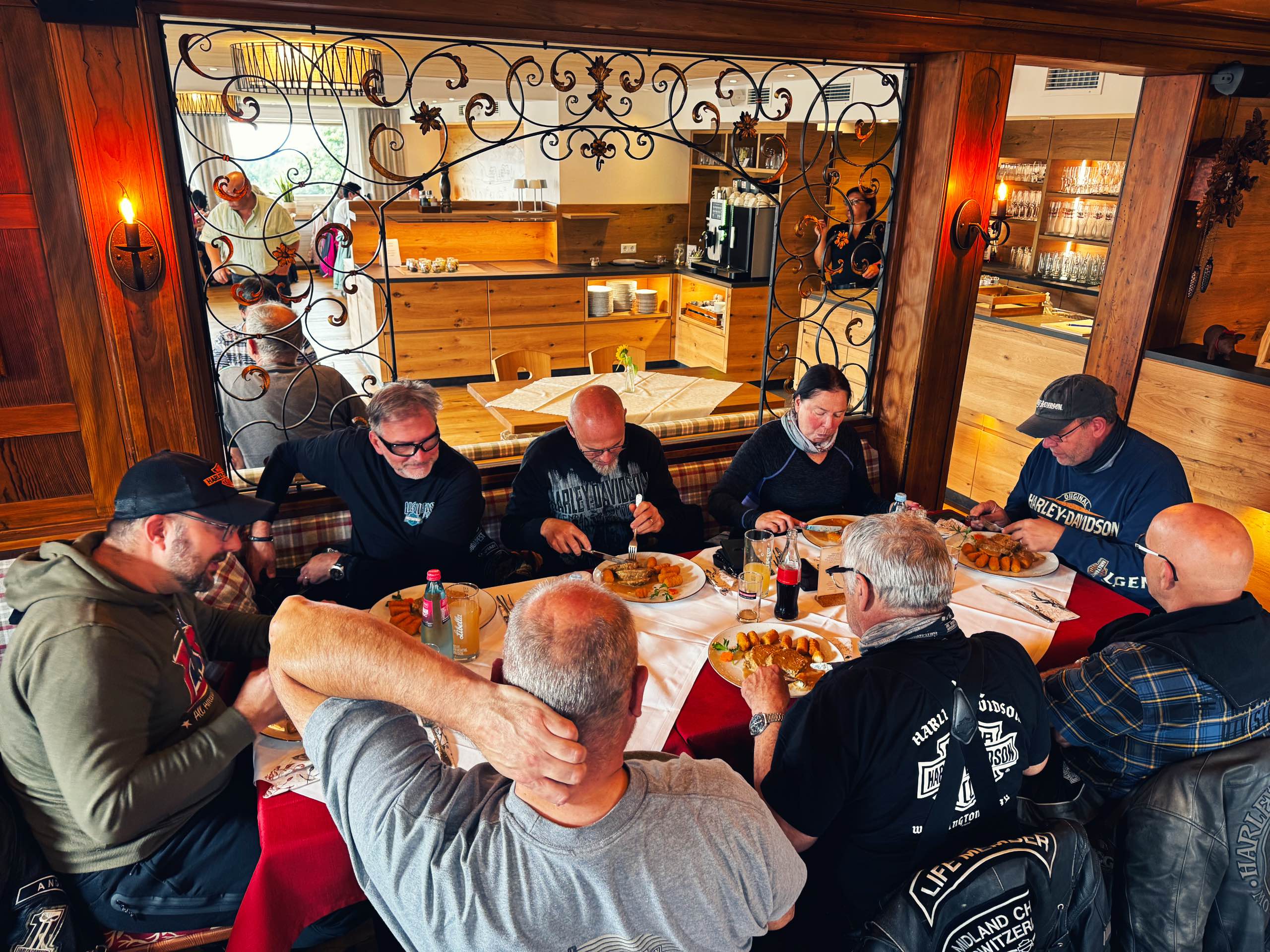 Am Nachmittag zeigte sich der Schwarzwald von seiner schönsten Seite: Kurvenreiche Strassen, tiefe Schluchten, schmale Täler – genau das Terrain, das Harley-Fahrer lieben. Für den süssen Abschluss hielten wir in der Wutachschlucht beim Restaurant Schattenmühle. Die Auswahl an Desserts war fast gefährlich: Hausgemachter Zwetschgenstrudel, Apfelstrudel, Eis mit und ohne Rahm – für jeden Gusto war etwas dabei. Spätestens jetzt zogen auch die letzten Regenpessimisten ihre Hosen aus. Und siehe da: Die Sonne lachte uns endlich richtig ins Gesicht.