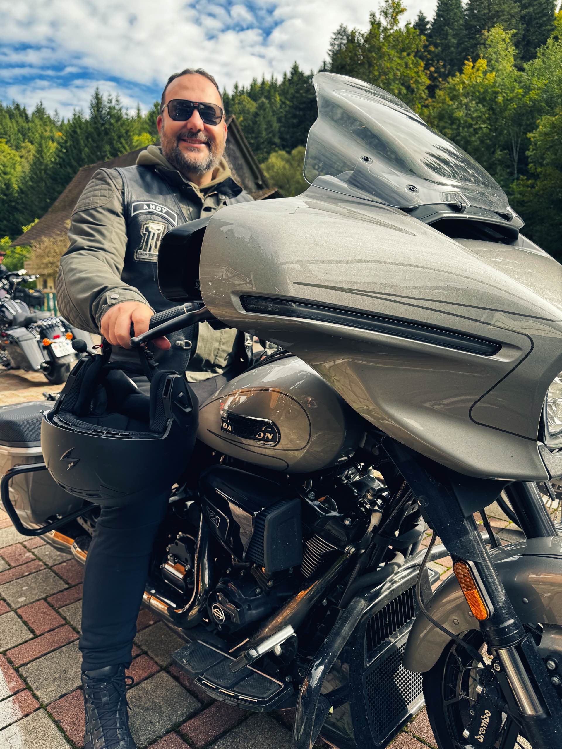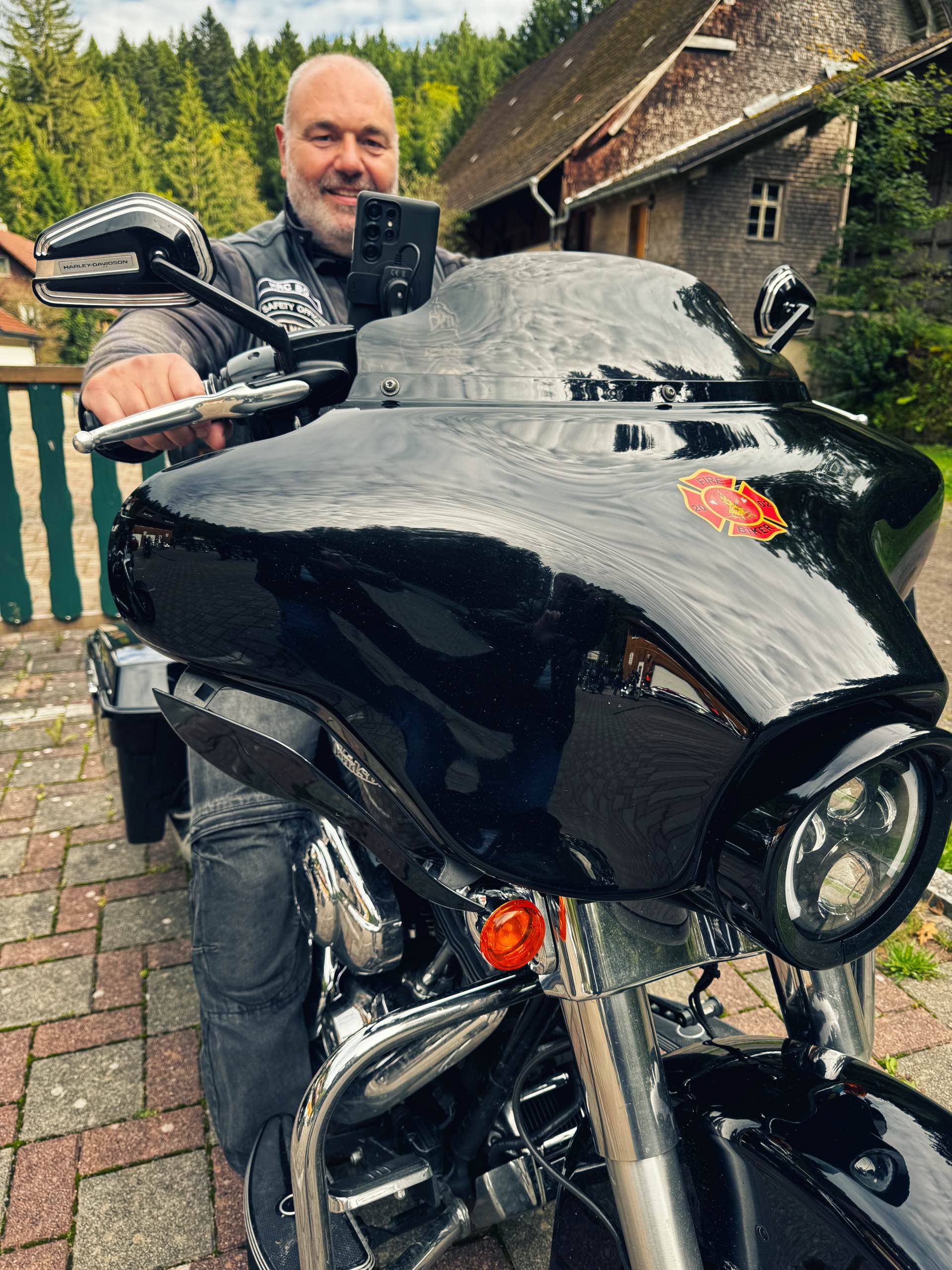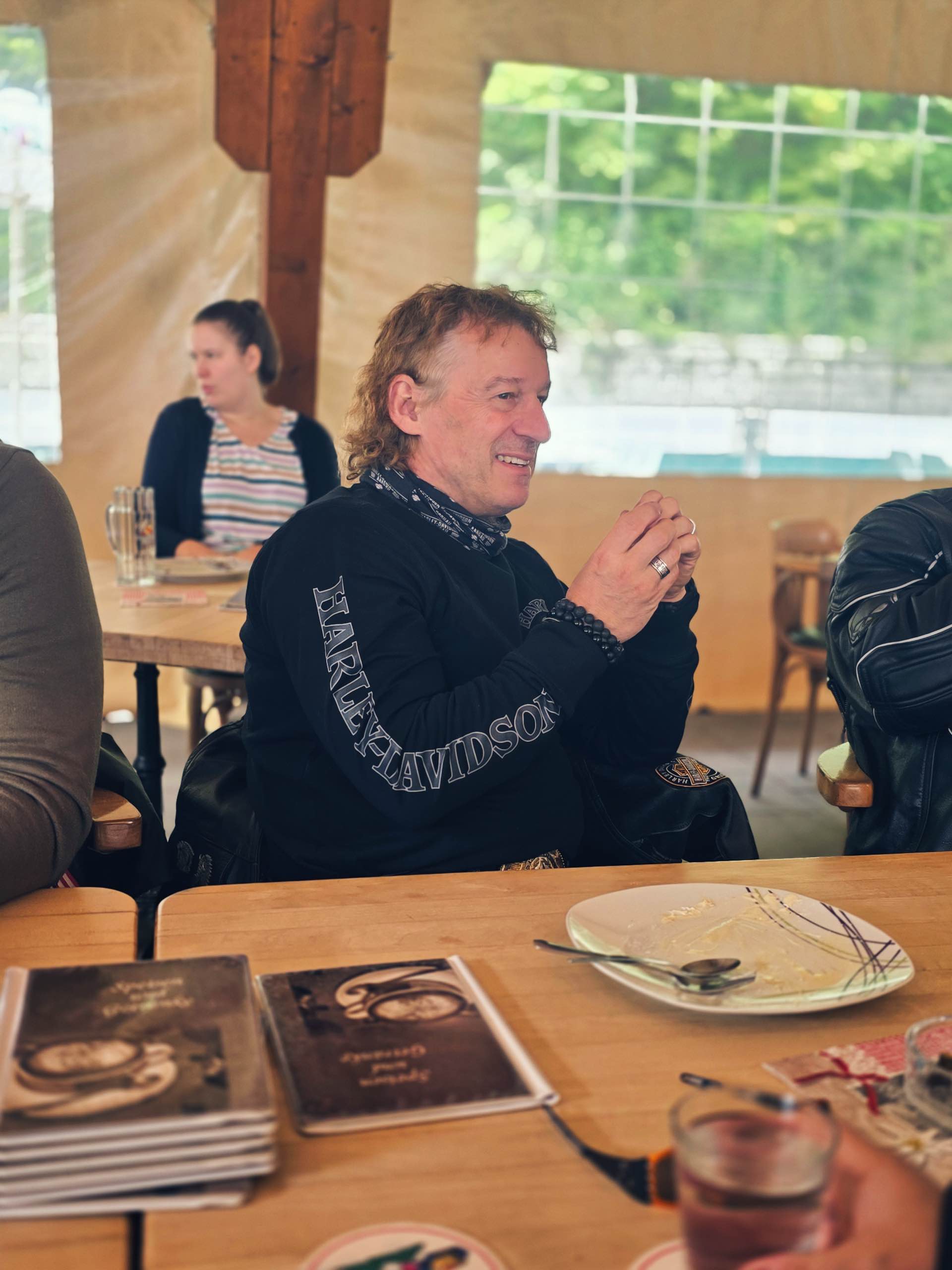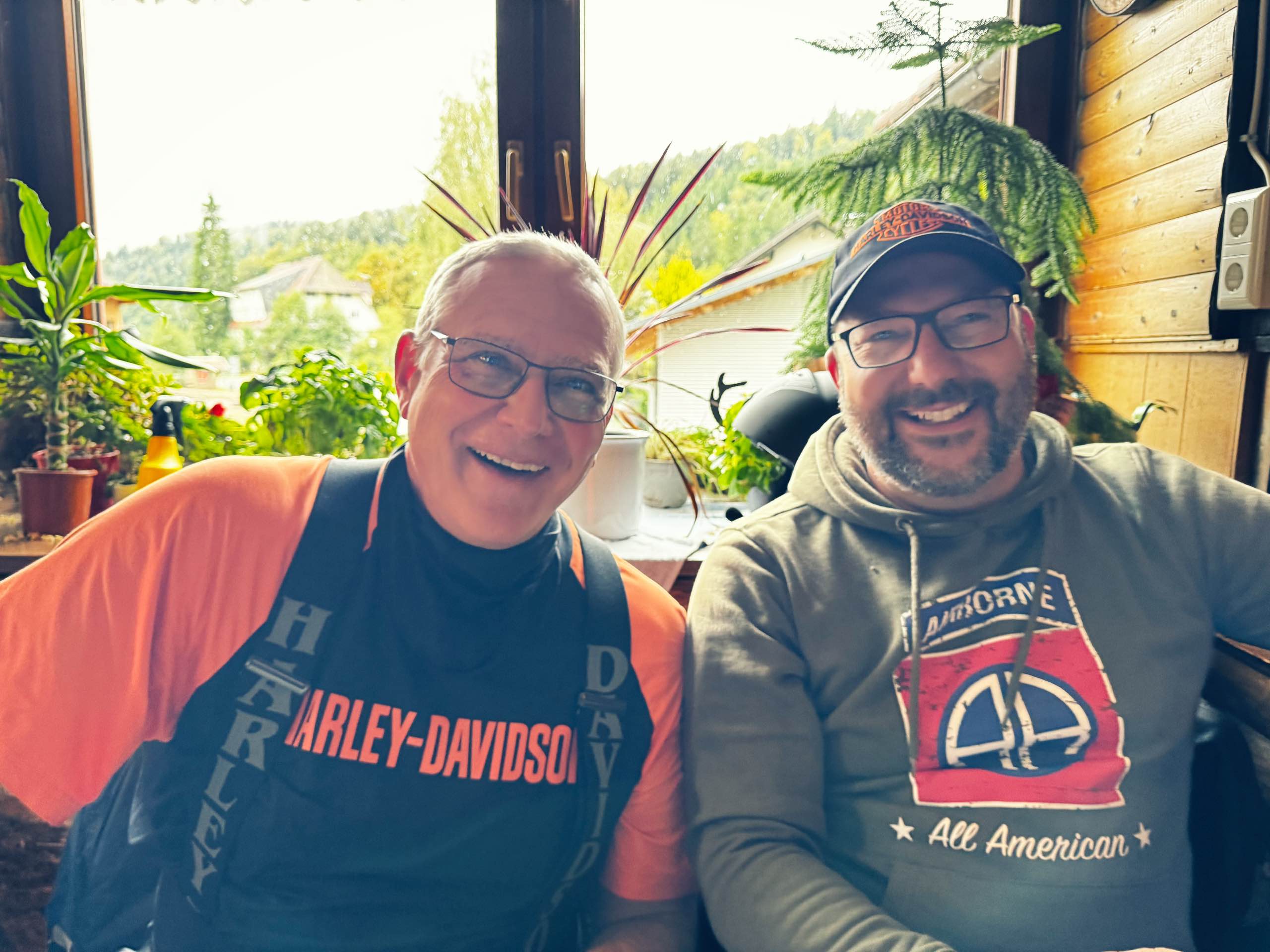 Am Nachmittag zeigte sich der Schwarzwald von seiner schönsten Seite: Kurvenreiche Strassen, tiefe Schluchten, schmale Täler – genau das Terrain, das Harley-Fahrer lieben. Für den süssen Abschluss hielten wir in der Wutachschlucht beim Restaurant Schattenmühle. Die Auswahl an Desserts war fast gefährlich: Hausgemachter Zwetschgenstrudel, Apfelstrudel, Eis mit und ohne Rahm – für jeden Gusto war etwas dabei. Spätestens jetzt zogen auch die letzten Regenpessimisten ihre Hosen aus. Und siehe da: Die Sonne lachte uns endlich richtig ins Gesicht.