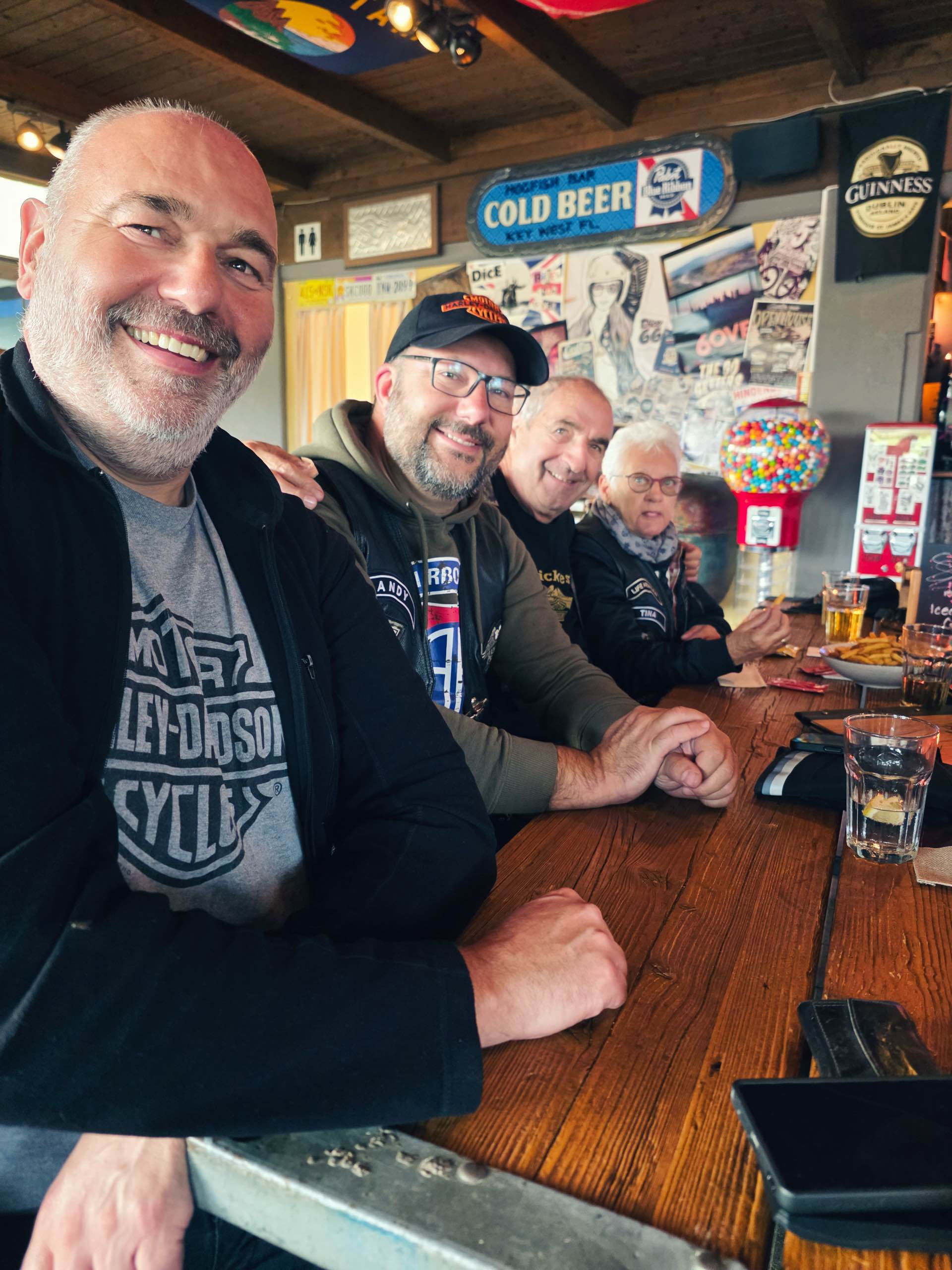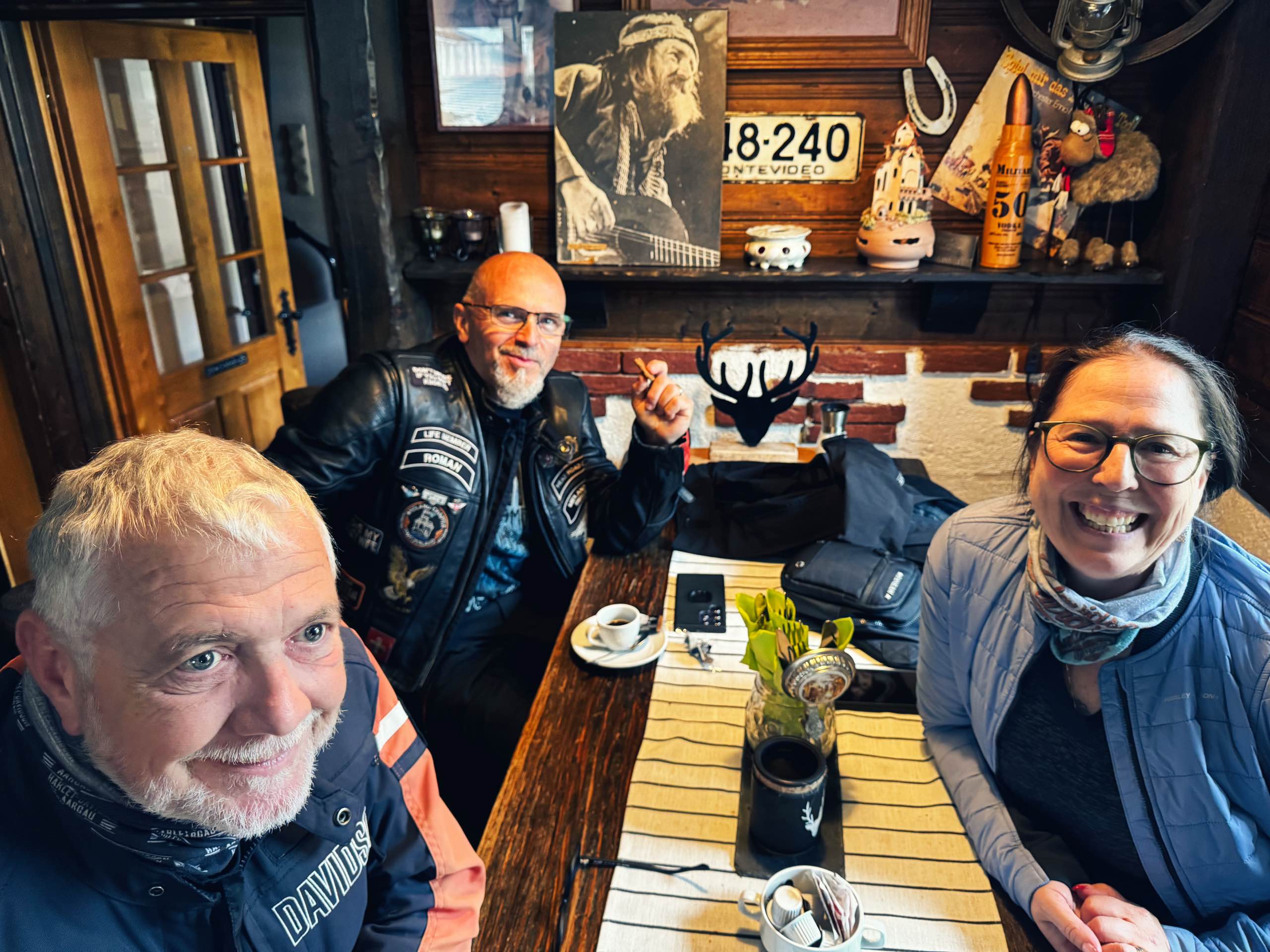 Die Heimfahrt führte uns über Bonndorf und Untermettingen, bis wir in Koblenz wieder die Grenze überquerten – zurück in die Schweiz! Den krönenden Abschluss gab es bei einem Drink im Chevy’s Roadstop in Remigen. Dort stiessen wir auf eine gelungene, wenn auch «feuchtfröhliche» Tour an – und damit meine ich natürlich nur das Wetter.