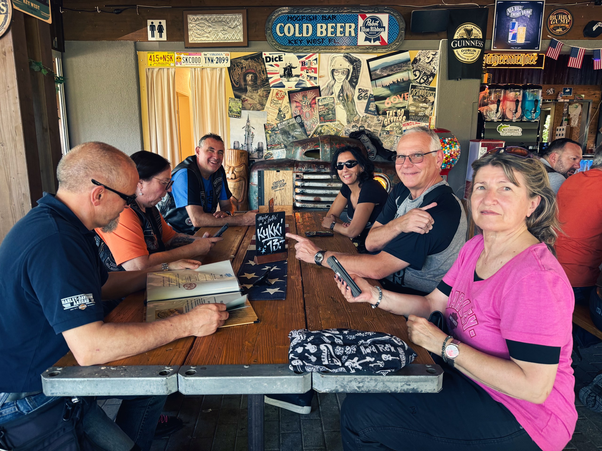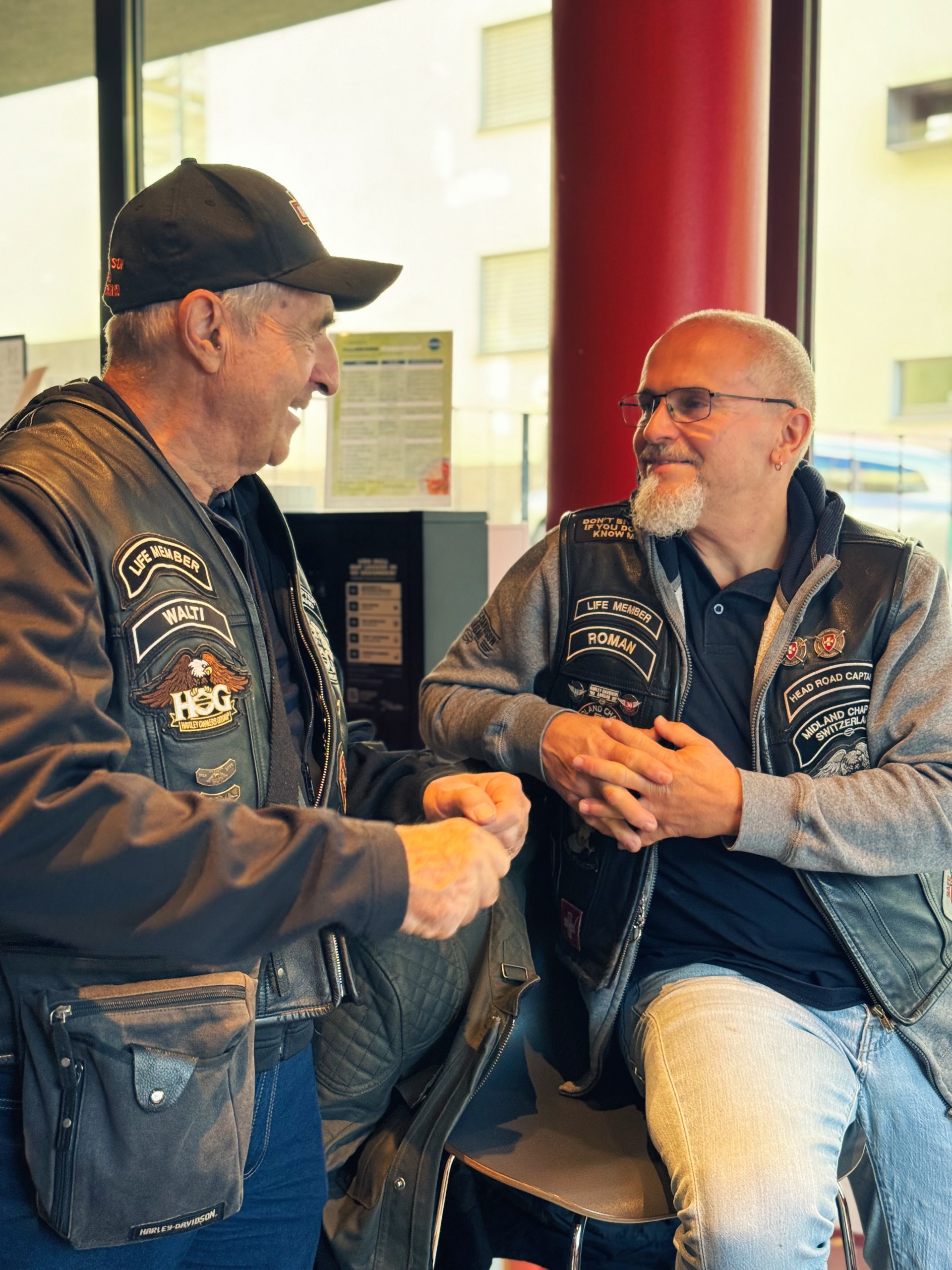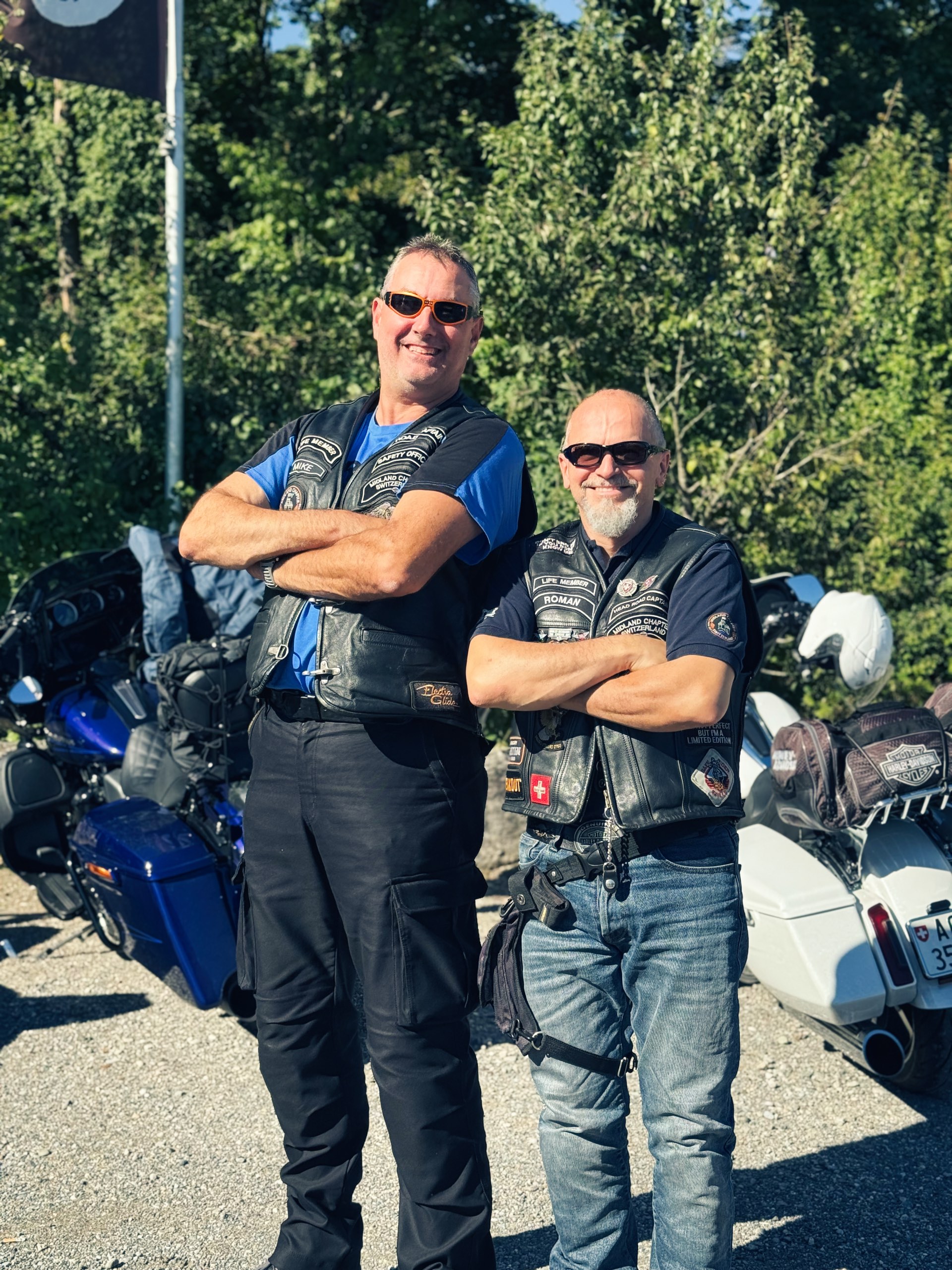 Um etwa 16.20 Uhr erreicht das Chapter schliesslich den Endpunkt in Remigen beim Chevy’s Road Stop. Road Captain Mike ruft uns nochmals zum Schlusswort zusammen. Dies ist erst seine zweite Tour gewesen und die erste zweitägige, welche er organisieren durfte. Er äussert sich total begeistert und freut sich, dass alles so gut geklappt hat und wir alle gesund am Ziel angekommen sind. Fahrstile kann er als Frontmann nicht so gut beurteilen, aber Safety Stefano hat nichts zu bemängeln; aus seiner Sicht war alles okay oder jedenfalls nicht der Rede wert. Auch HRC Roman findet die Tour rundum gelungen und dankt Mike für die Arbeit und Top-Organisation.