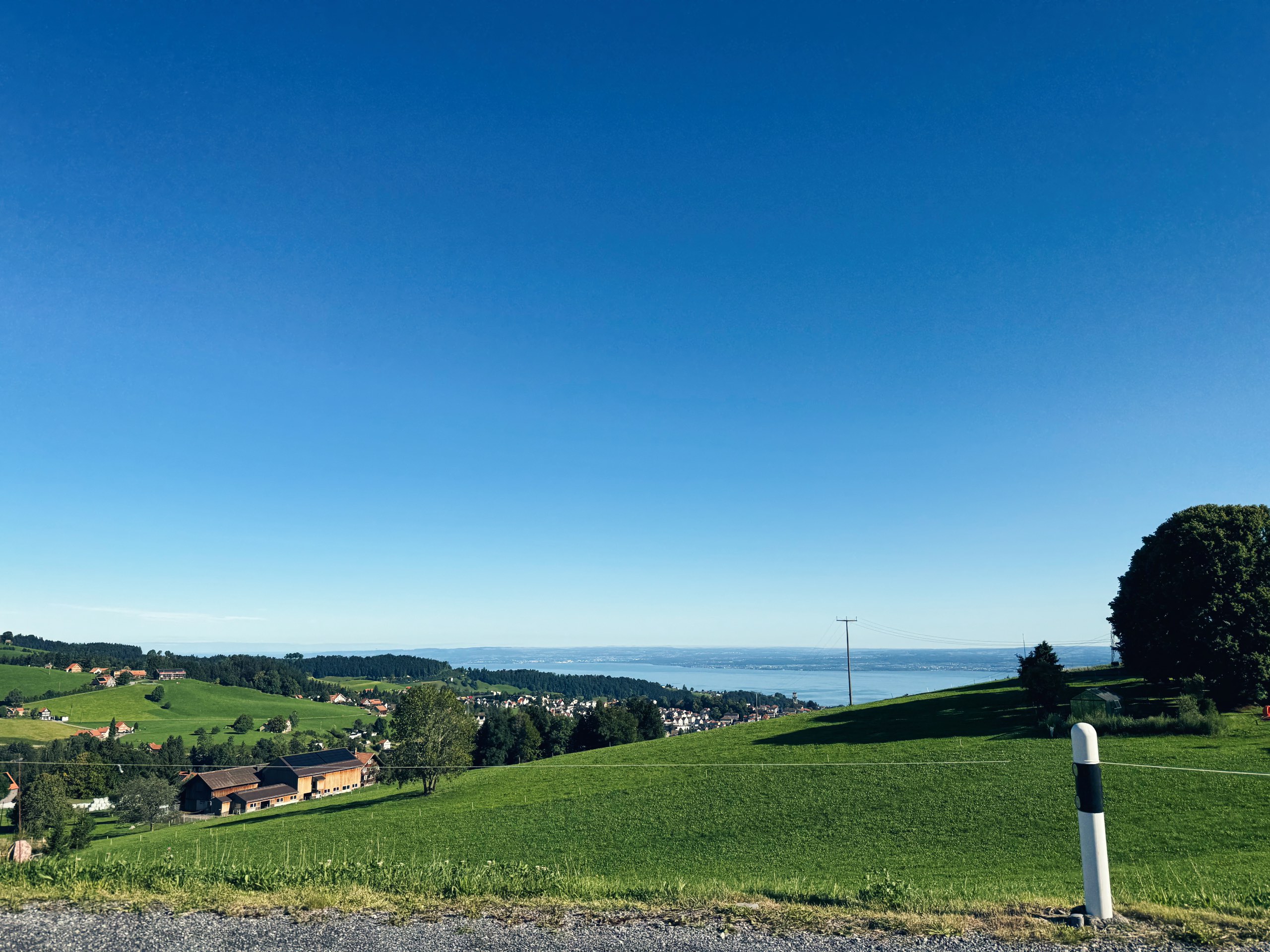 Um 14.20 Uhr brechen wir auf zur letzten Etappe des heutigen Tages. Nach Dornbirn führt uns der Weg übers Bödele (Losenpass, 1139 m) durch den wunderschönen Bregenzerwald. Beim Anstieg erhaschen wir den einen oder anderen Blick auf den Bodensee, was bei mir als Sozia Begeisterung auslöst, und auch ich zücke ab und zu das Handy für Fotos. Auf der anderen Seite geniessen wir die liebliche Landschaft und hübschen Ortschaften. Ich behaupte jetzt, alle Fahrer haben diese abwechslungsreichen Kurven auf dem Weg nach Bregenz noch genossen, wo wir nach einem Tankstopp kurz nach 16.00 Uhr im Hotel Ibis eintreffen und unsere Harleys in der Tiefgarage parkieren.