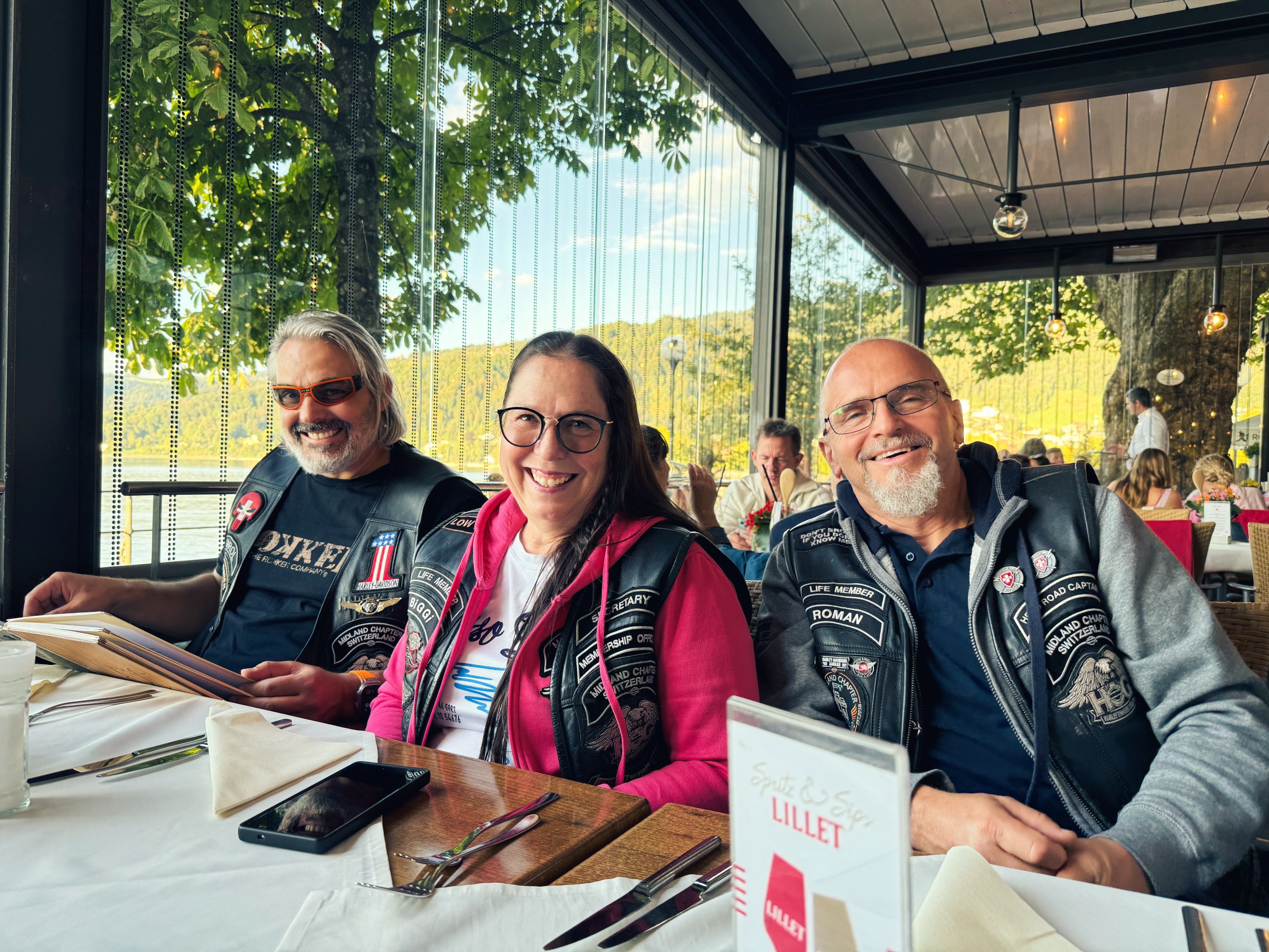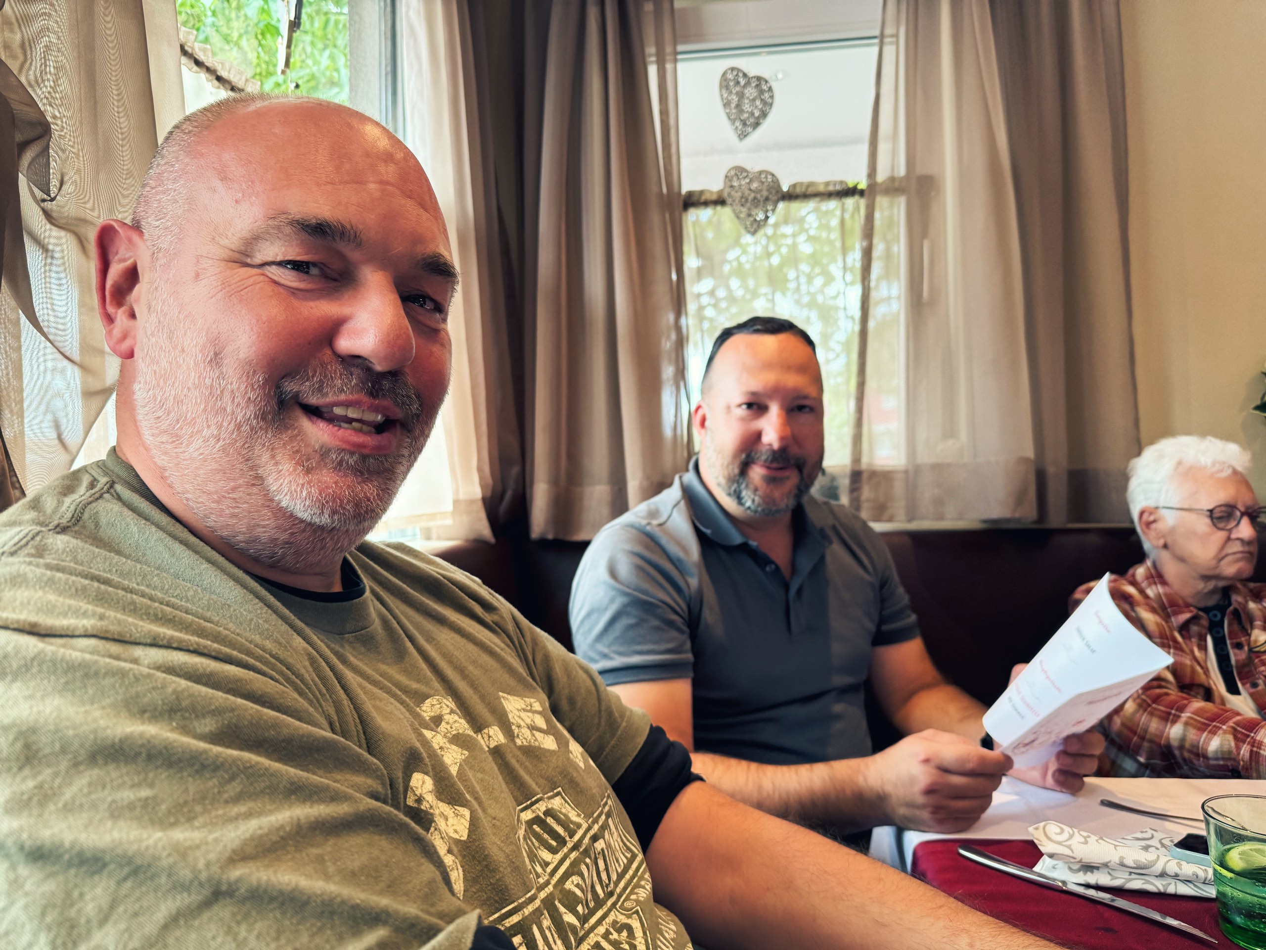 Kurz nach der Weiterfahrt verlassen wir die Autobahn. Der Weg führt uns unter anderem durch Sargans und Bad Ragaz, dort zweigen wir ab auf einen sehr schönen Streckenabschnitt und tuckern via das malerische Maienfeld und St. Luzisteig ins Fürstentum Liechtenstein. Dieses durchfahren wir in nördlicher Richtung und erreichen schliesslich über den Schellenberg das österreichische Feldkirch. Inzwischen hat es etwas aufgeklart, der Verkehr stockt da und dort ein wenig. In Götzis gibt es einen ausgedehnten Mittagshalt im Restaurant Milwaukees. Die Küche liefert schnell, das Essen schmeckt lecker, und die Bedienung ist überaus freundlich. Vor allem die „kleinen Schnitzel“ sorgen für Erheiterung, und für Roli ist das definitiv zu viel Fleisch, sodass er liebend gerne einen Teil davon abgibt. Nach angeregten Gesprächen und fast unbemerkten Regentropfen ist es definitiv Zeit, uns der Regenbekleidung zu entledigen, denn die Sonne scheint!