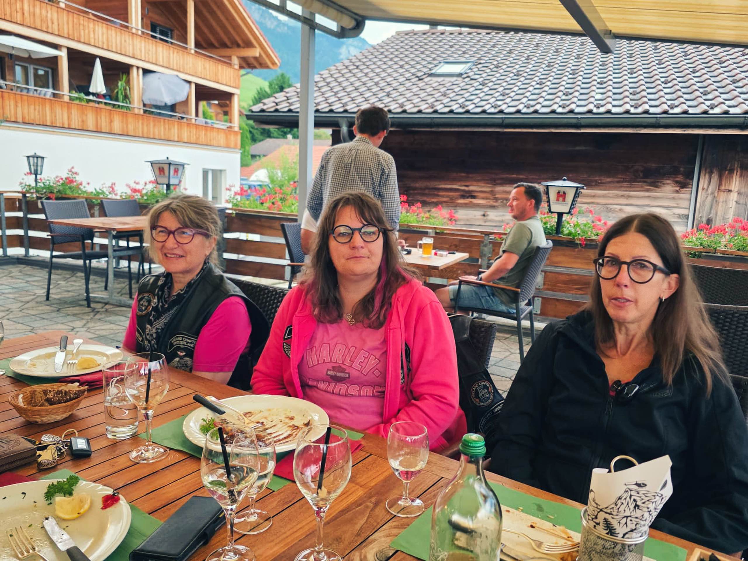 In Sigriswil angekommen, wurden wir im Hotel Adler sehr freundlich empfangen und bezogen unsere Zimmer. Anschliessend trafen wir uns auf der Hotelterrasse. Das Motorradfahren und das heiss-schwüle Wetter machten durstig – Wassertrinken stand als Erstes auf der Liste.